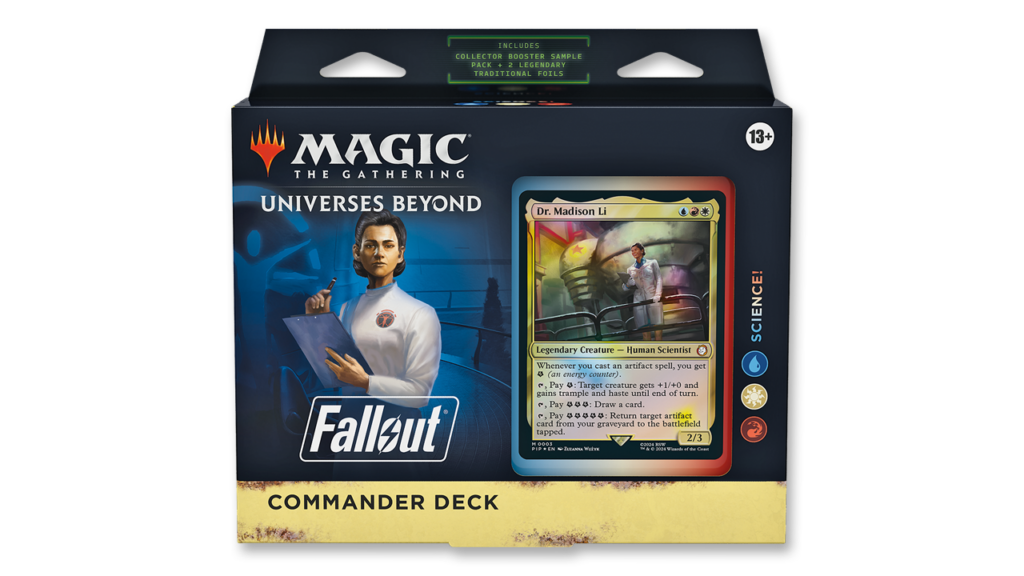 As we mentioned earlier, and as the name suggests, the core of the MTG Fallout set is four Commander decks. Each representing a different faction and theme within the Fallout franchise, these decks each have a lot to offer. Containing both new cards as well as reprints, this set has plenty for MTG and Fallout fans alike.