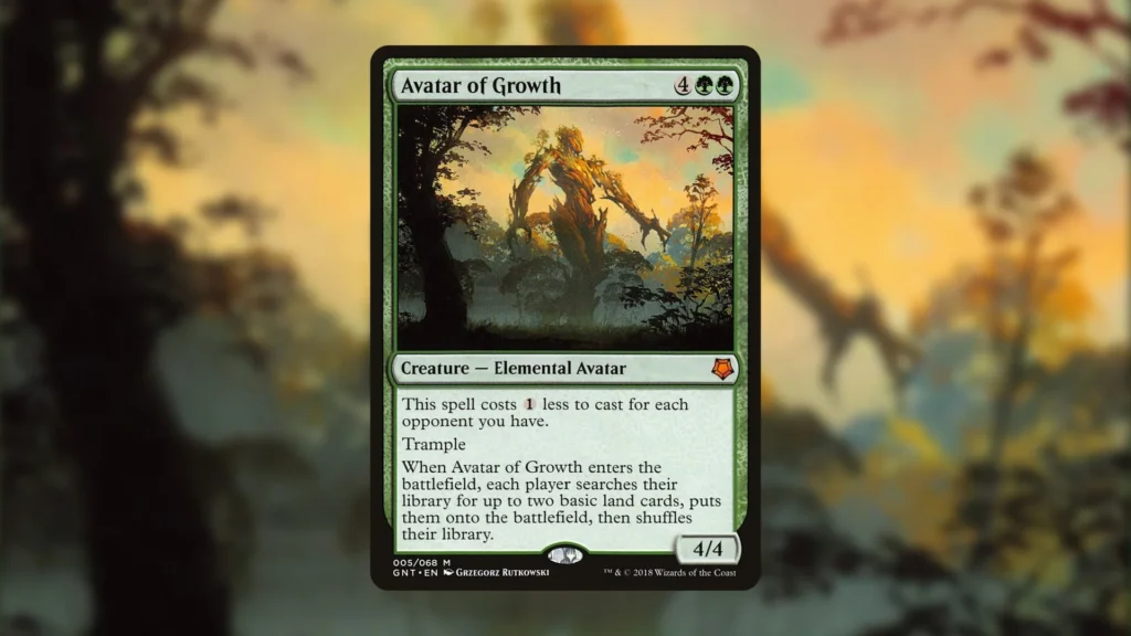 In the right deck, Avatar of Growth can be quite powerful in Commander. A three mana 4/4 is already above rate, but ramping two basic lands into play makes Avatar of Growth one of the most efficient ways to ramp in any color. That said, your opponents get to do this too, so you need to build your deck to break the parity that this card offers.