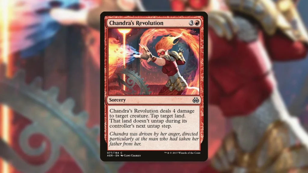 As for Magmatic Hellkite’s role in the MTG color pie, the effect it gives isn’t too different from red designs we’ve see in the past. Both Chandra’s Revolution and Stensia Innkeeper were printed with the ability to keep an opponent’s land tapped down in red.