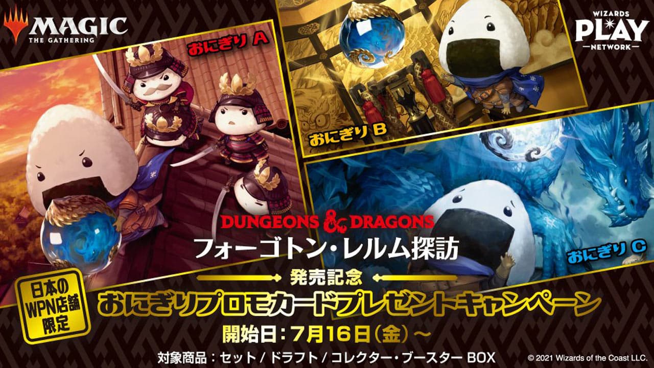 With the release of Forgotten Realms on the horizon, WotC Japan is offering promotional cards for buying products from Wizard Play Network (WPN) stores. You can purchase set boosters, draft boosters, and collector booster boxes to obtain the “Onigiri” Orb of Dragonkind card. There are three versions of the card to collect which vary depending on the location of the Japanese WPN store.