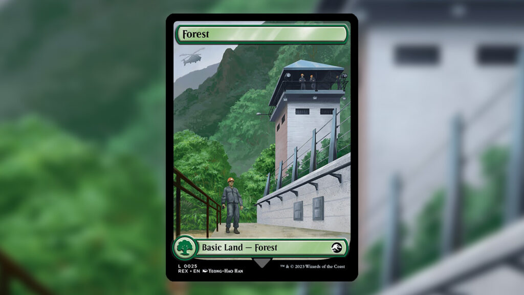 Basically, for each Jurassic World slot in a Set or Collector Booster, players are more likely to get a Basic Land than they are a mechanically unique card. There are 26 Jurassic World cards available, but six of those cards consist of Basic Lands and Command Tower. In each of the Jurassic World slots, players actually have a higher chance of opening a Basic Land than… anything else.