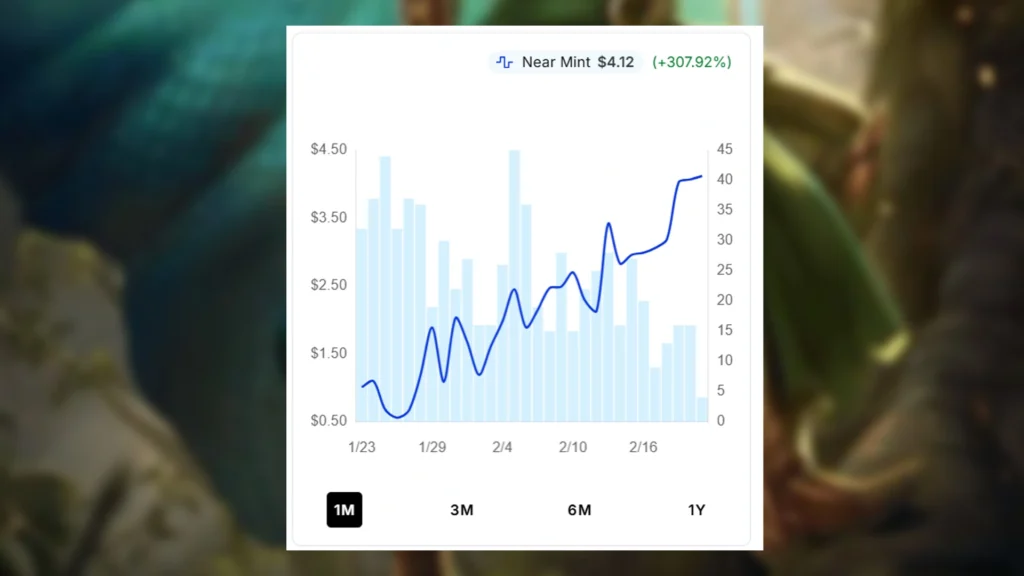Thanks to this uptick in Commander play, Lathril’s demand has risen considerably. With demand consistently high, Lathril’s market value has been steadily climbing upward from a low of $0.56 in January. Now, the lowest listing for a near-mint, non-foil copy from MTG Foundations is $2.90, representing a 418% price spike. This comes in spite of the fact that there are 118 non-foil, near-mint listings still available for MTG Foundations copies.
