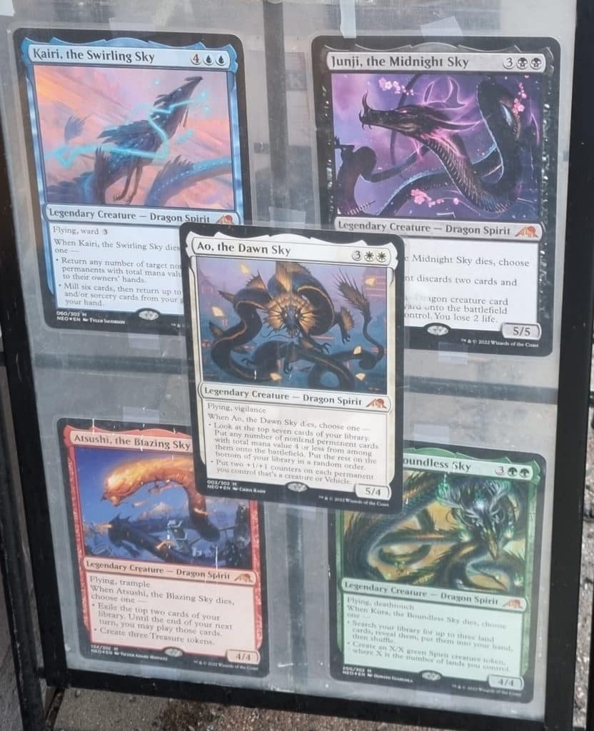 The first one that we can pretty much be sure of is “two popular cycles from Champions of Kamigawa block return each with a new twist”. For this we know that the Spirit Dragon Cycle is getting revamped, and we’ve already seen some of these cards. The other cycle that we can speculate here is the Legendary Land cycle that we’ve seen some random leaks of. Both of these are from Champions of Kamigawa, so this would make a ton of sense.