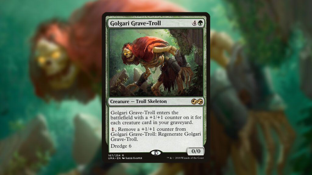 The biggest tool that Legacy Dredge players can utilize that Vintage and Modern don’t have access to is a full playset of Golgari Grave-Troll. This is the only card in all of Magic that can Dredge 6, meaning that you can replace one of your draws by milling six cards and returning the Grave-Troll to your hand. Dredging 6 cards vs Dredging 5 cards with Stinkweed Imp or Golgari Thug may not seem like a huge difference, but the card is banned in Modern and Restricted in Vintage for a reason.