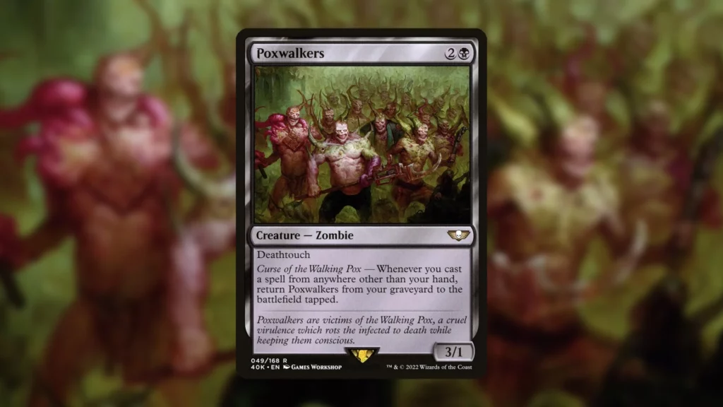 Like normal Dredge, this deck can win the game by flooding the board with recurring creatures from the grave. Poxwalkers is the main threat that keeps coming back – another card that is unique to the Legacy build of this deck. Hailing from the Warhammer 40K set, Poxwalkers can return from the grave as long as you cast a spell from outside of your hand. Escaping Ox of Agonas can get the job done, but the best cards to cast in order to achieve this are Otherworldly Gaze and Cabal Therapy.