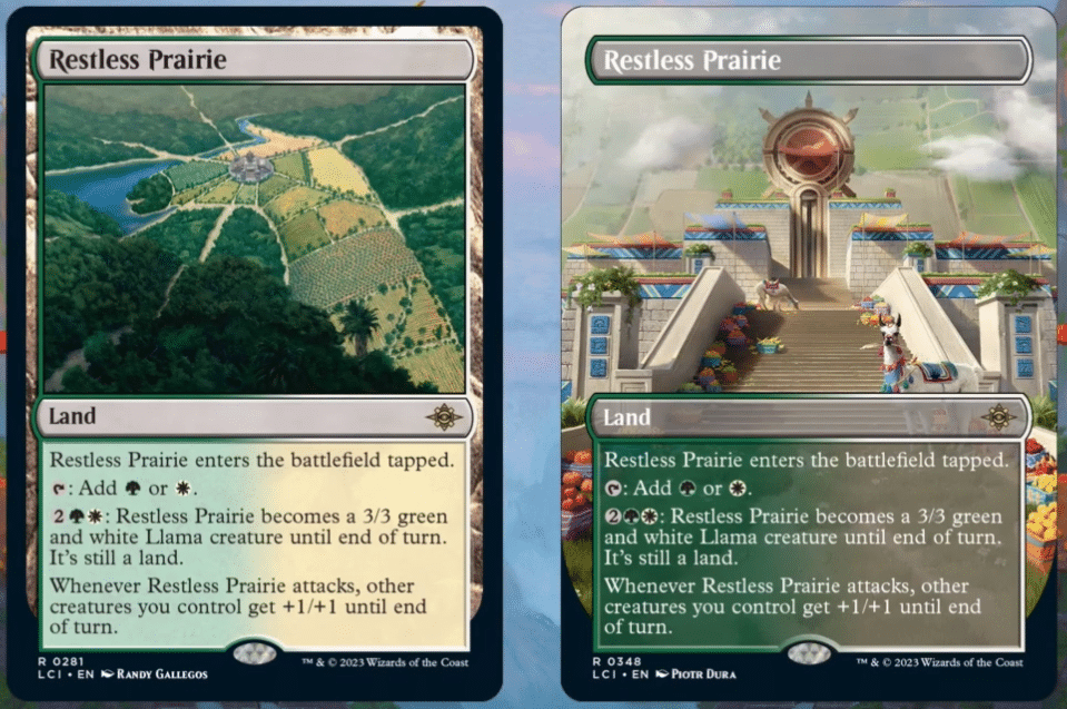 It appears that the new cycle of tapped Manlands that released alongside Wilds of Eldraine may be completed in The Lost Caverns of Ixalan. The allied color pairings appear to be making their presence known, while the enemy colors were released in Wilds of Eldraine. Restless Prairie looks like an interesting card for creature decks trying to go wide in the Standard format.
