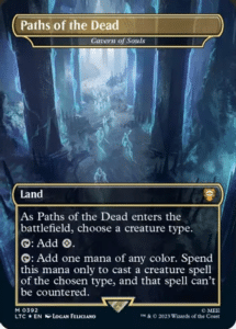 Cavern of Souls has a ton of reprints, yet the card is still worth around $55 at its absolute lowest. This is a tribal player’s dream, fixing for any color of mana for spells that have a selected creature type. The cherry on top, and the reason why this card is so expensive, is that Cavern of Souls prevents cards cast with it (as long as it adheres to the tribe of choice) from being countered. This gives tribal decks an additional dimension against Counterspell-heavy decks like Izzet Murktide in Modern.