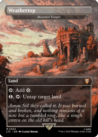 Deserted Temple is a utility land that can have some interesting applications. This can be useful in decks that have lands that tap for multiple mana, like Gaea’s Cradle, or Nykthos, Shrine to Nyx, but it can be equally powerful to use multiple activated abilities of another land in the same turn. When used in conjunction with Maze’s End, you can both play and activate Maze’s End’s ability in the same turn. This could also lead to you activating Maze’s End, replaying it, using Deserted Temple, and activating it again.