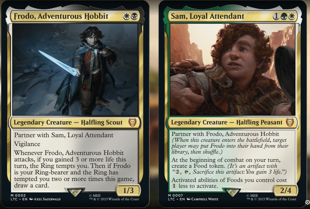 Partner is one of the most powerful mechanics that Commander has ever seen. The new combination of Frodo, Adventurous Hobbit and Sam, Loyal Attendant definitely leans towards a Food theme, but Frodo seems the more powerful of the two characters here. You need a Food to trigger Frodo’s Temptation ability, but a massive amount of card advantage can be found here.