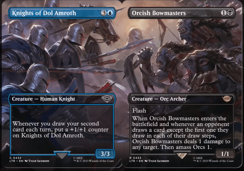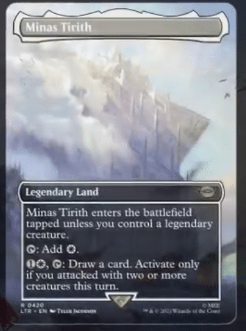 Previous to this reveal, many of Lord of the Rings’ iconic characters have not yet been revealed. We’ve seen Frodo, Samwise, Gandalf, and more, but Gimli, Legolas, (confirmed to appear) and many others have yet to have their MTG interpretations unveiled.