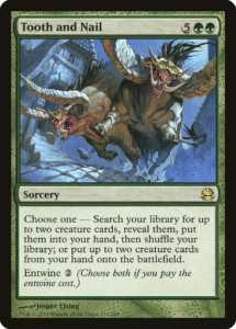 One of Mark Rosewater’s teasers states that one mechanic will return that he had to fight “Tooth and Nail” for. This doesn’t necessarily mean that this was a reference to the Tooth and Nail MTG card. We partially already expect that this may be a mechanic referenced on a potential leaked Lord of the Rings card. This could, however, be exactly a reference to the Tooth and Nail card, in which case, the mechanic being referenced here is likely Entwine!