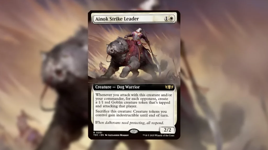 Ainok Strike Leader is a fantastic one-man army in Commander. Having the option to attack with your Commander to trigger this creature means that it can somewhat shrug off summoning sickness. Even though the attack trigger resembles Myriad somewhat, your Goblin tokens are permanent, which allows Ainok Strike Leader to continually build a bigger board.