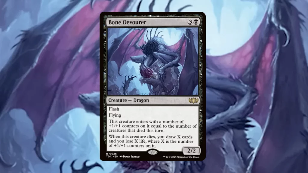 Bone Devourer is probably less exciting than it appears. There are a lot of creatures that offer a scaling reward equal to how many creatures died upon entry. Devourer is capable of drawing a lot of cards, but it needs to die for that to happen. Considering how popular Path to Exile and Swords to Plowshares are in Commander, this might be a surprisingly difficult task to accomplish.