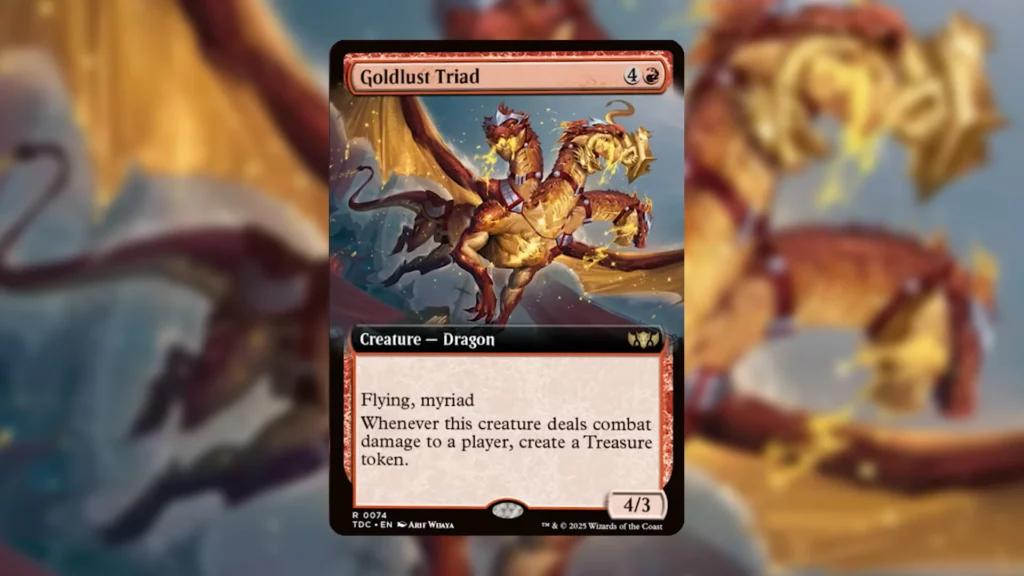 That said, Goldlust Triad will be at its best when its Myriad and combat damage triggers can be copied. This can lead to a ton of damage, a massive amount of Treasures, and a huge tempo swing. I would expect this to show up in Isshin, Two Heavens as One decks.