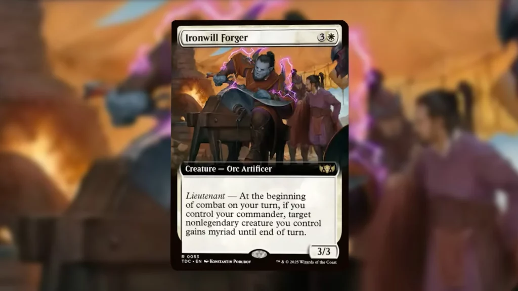 Not every Commander deck is going to want this, but using Ironwill Forger will hardly be difficult. Any deck that wants to create copies of creatures with ETB effects will be interested in granting their creatures Myriad. In other cases, where your creatures scale with the size of your board, Ironwill Forger threatens a ton of damage. Construct tokens from Urza, Chief Artificer are an example of this. All in all, Ironwill Forger is a solid card that will likely find a home under a sizeable amount of Commanders.
