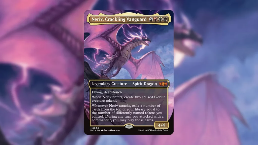 Neriv, Crackling Vanguard is far less adaptable than Zurgo, but it’s not a bad card in token strategies that support it. Neriv will excel in creating a lot of Impulse draw-based card advantage. The cards don’t necessarily go away, but having your Commander removed repetitively will make it difficult to access your loot. The build conditions of this Commander are also a lot more strict than Zurgo. Zurgo doesn’t really care what tokens you use, but Neriv specifically needs tokens of different names to scale its payoff.