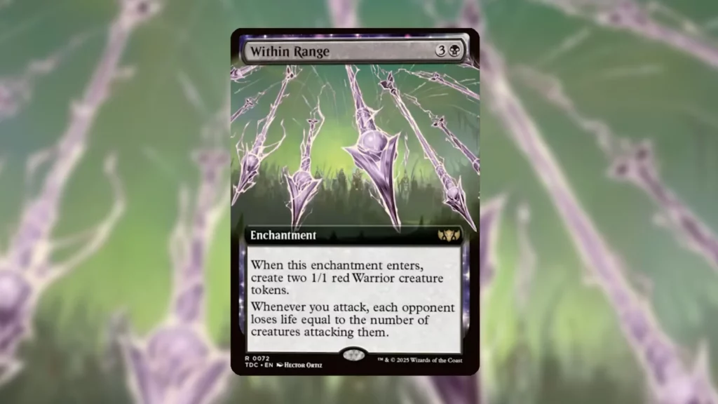 Within Range is a neat way of scaling the damage that small token decks can dish out. Notably, you’ll want to order the attack trigger of Within Range to resolve after all of your effects that are creating tokens during combat. The card creates two tokens on its own as well, which allows Within Range to have a bit of board presence on impact.