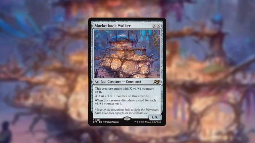 Marketback Walker is an obvious callback to cards like Walking Ballista and Hangerback Walker from the original Kaladesh block. Structured almost exactly like Walking Ballista, Marketback Walker gains its counters in the exact same ways for the exact same mana values.