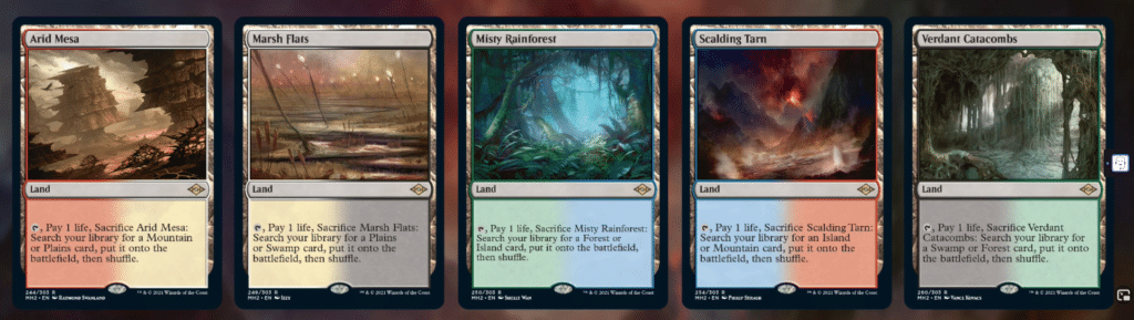 One of the greatest features of Modern Horizons 2 are the enemy fetch lands, staples of any Modern, Legacy, and Commander Deck. These five cards, available in retro frames as well, are one of the best reasons to pick up MH2 booster packs no matter when you buy them.