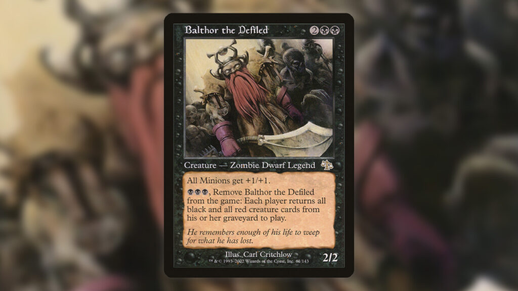 Zombies are all about returning from the dead, and Balthor the Defiled takes that to another level. Not only do you get to reanimate all of your black and red creatures, everyone does.