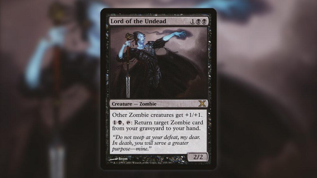 Lord of the Undead offers some incredibly powerful utility for just three mana. The creature both acts as a Lord for your Zombies and as recursion, making sure you always have something to do. The abilities may seem simple, but it means your opponents will need to prioritize removing the Lord of the Undead, or else all the Zombies they’ve slayed so far will find their ways back to your battlefield.