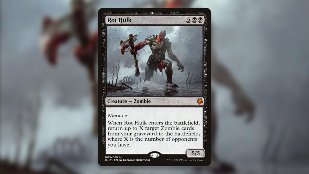 Rot Hulk does its best work in multiplayer formats. Capable of resurrecting an army of Zombies on entry, this creature can create an entire board on its own. This is exactly the type of seven mana haymaker you want in a Zombie deck. Since Rot Hulk’s trigger occurs on entry, reanimating this Hulk early-on can be devastating.