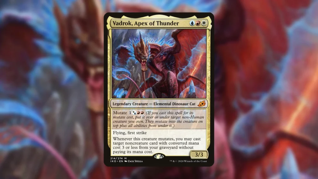 The last point, in particular, allowed Mutate to thrive as a powerful combo deck during its time in Standard. Abusing Goldspan Dragon’s ability, you could create infinite mana while recurring spells from the graveyard repetitively with Vadrok, Apex of Thunder. Between this, and creating massive chains of Mutate value, some players remember the Mutate mechanic fondly.