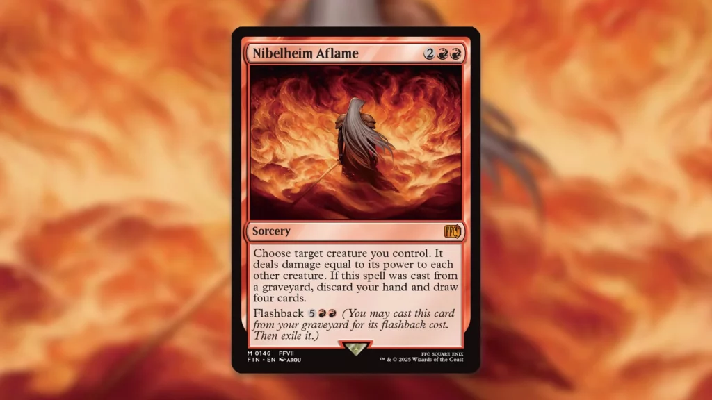 That said, this card makes up for that in its Flashback effect. Seven mana is expensive, but should it resolve, you’ll get a boardwipe and a hand refill. This makes Nibelheim Aflame much stronger in decks that mill over cards, Loot, Rummage, or have any synergies with the graveyard. One board wipe isn’t too interesting, but two board wipes attached to a lategame hand refill is strong enough to see play across many Commander decks.