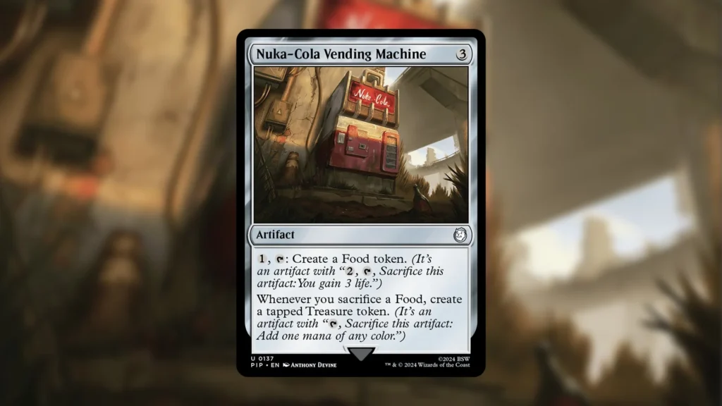 Reprinting this card isn’t easy, either. Nuka-Cola Vending Machine is an iconic part of the Fallout IP, making it difficult to reprint outside of another Fallout Universes Beyond set. Wizards of the Coast can do it, but Universes Beyond cards have barely ever been reprinted so far. To date, The List was the only consistent way Universes Beyond cards ever saw a reprinting, and that has been discontinued.