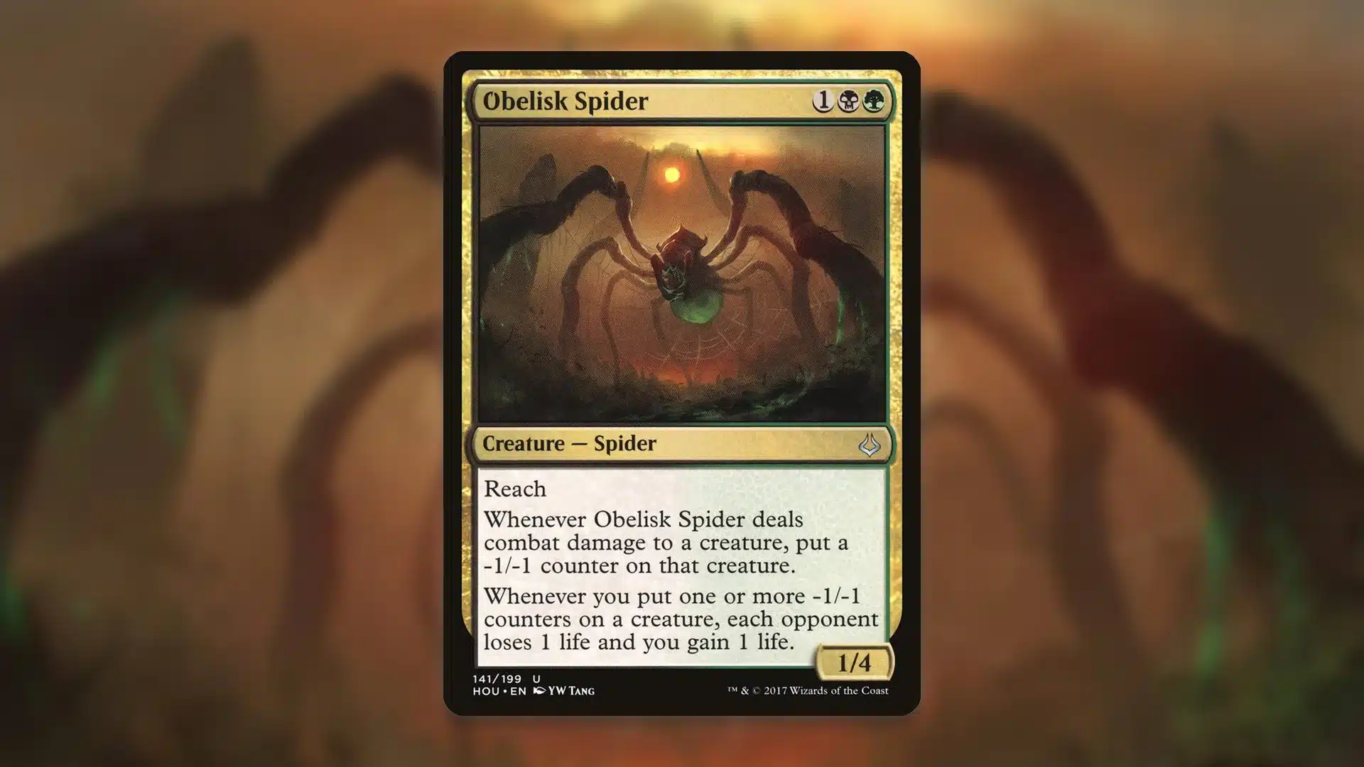 Notably, while Blight Curse has no shortage of Blight and Wither effects, Obelisk Spider also has some combo potential. Alongside Hapatra and Yawgmoth, Thran Physician, Obelisk Spider can offset the life loss to go near-infinite. Alternatively, while off color, using Sinking Feeling with Channeler Initiate creates an infinite loop of -1/-1 Counter generation and removal, which Obelisk Spider turns into infinite damage.