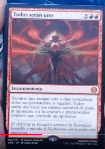 Just when we thought that a good official spoiler season would take over Phyrexia: All Will be One previews, lightning struck twice. A recent YouTube video appeared, detailing Spanish versions of almost the entire new set ahead of time. Among the cards detailed was a new Mythic Rare enchantment with speculators rushing to the secondary marketplace. It looks like the new Red enchantment, notably the set’s namesake card, may be an incredibly powerful infinite combo tool.