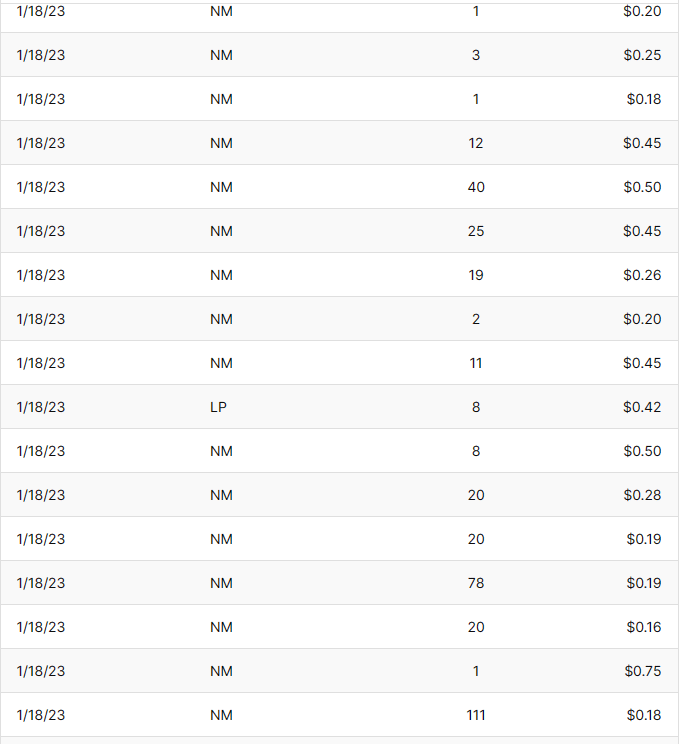 Like The Red Terror, War Elemental saw a sudden surge in secondary market interest, but not as severe. The uptick is still clear, however, as not a single copy of War Elemental was sold the previous day (17th) on TCGplayer. 46 copies of War Elemental sold the next day.