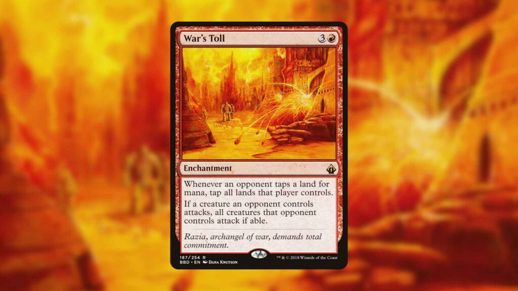 All of that said, in the right Commander decks, War’s Toll can win games on its own. If you’re looking for a neat way to make your opponents stop countering your spells, this could be the enchantment you’ve been looking for.