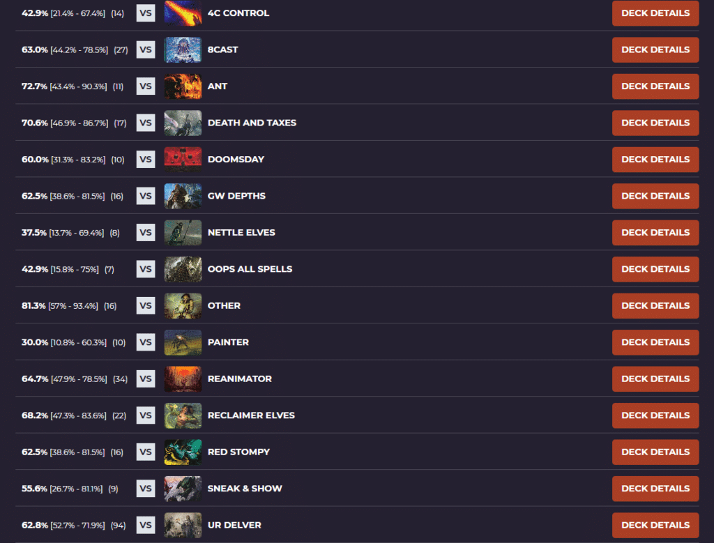 This definitely does not arrive at the level of a ‘forced rotation’ yet, but it is a deck that the Legacy format will need to adapt to. Admittedly, the recorded data on mtgmeta.io suggests that Initiative dominates many common matchups, including the UR Delver deck that many considered a problem not too long ago. The deck’s bad matchups against Nettle Elves and Painter prove that the deck can be beaten, but it is going to force a lot of adaptation from all the other archetypes commonly seen in the format. Keep in mind that this data is based on a relatively small sample size, so biases involved by piloting errors will affect these percentages more than average.