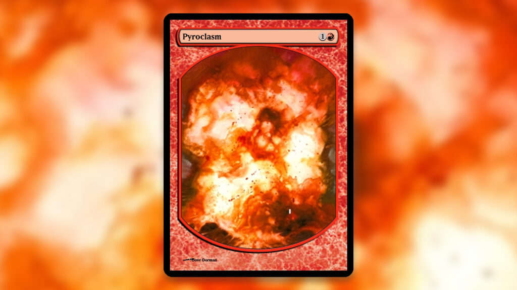 Pyroclasm is not an expensive Magic card. Thanks to tons of printings, Pyroclasm doesn’t even cost most players a dollar to acquire. That said, if you want to tech your deck out with the coolest Pyroclasm on the market, prepare to pay.