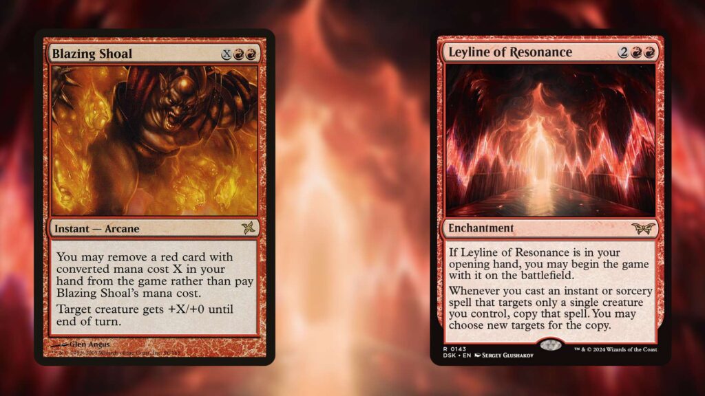 Using Leyline of Resonance and Blazing Shoal, it’s extremely easy to push Quicksilver’s power to over 20, allowing for a turn-one knockout blow. Blazing Shoal can be cast for free, and all the other parts of this combo start the game in play if they’re in your opening hand. You do need to pitch a ten-mana red card to Blazing Shoal to pull this off, but there’s a surprising amount of options you can use.