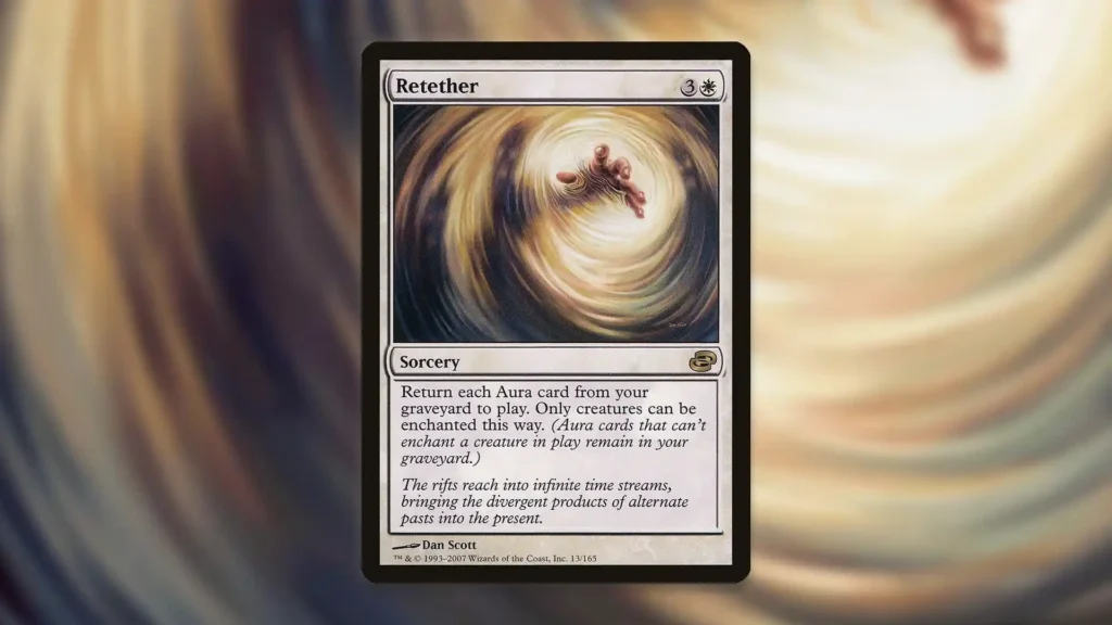 Originally printed in Planar Chaos, Retether is a simple design that addresses a major weakness of auras decks. Since you spend so much time investing in enchanting your creatures, board wipes can feel especially devastating.