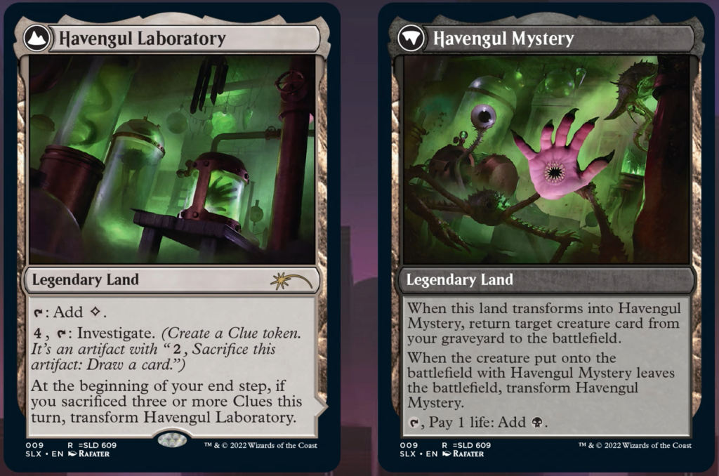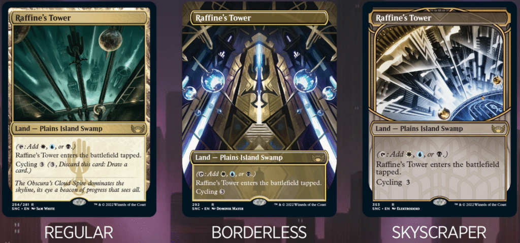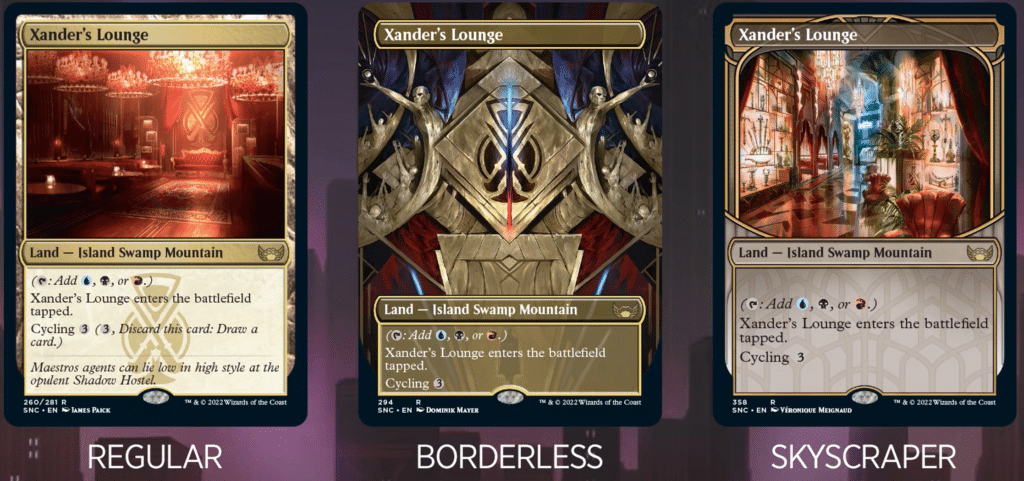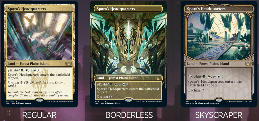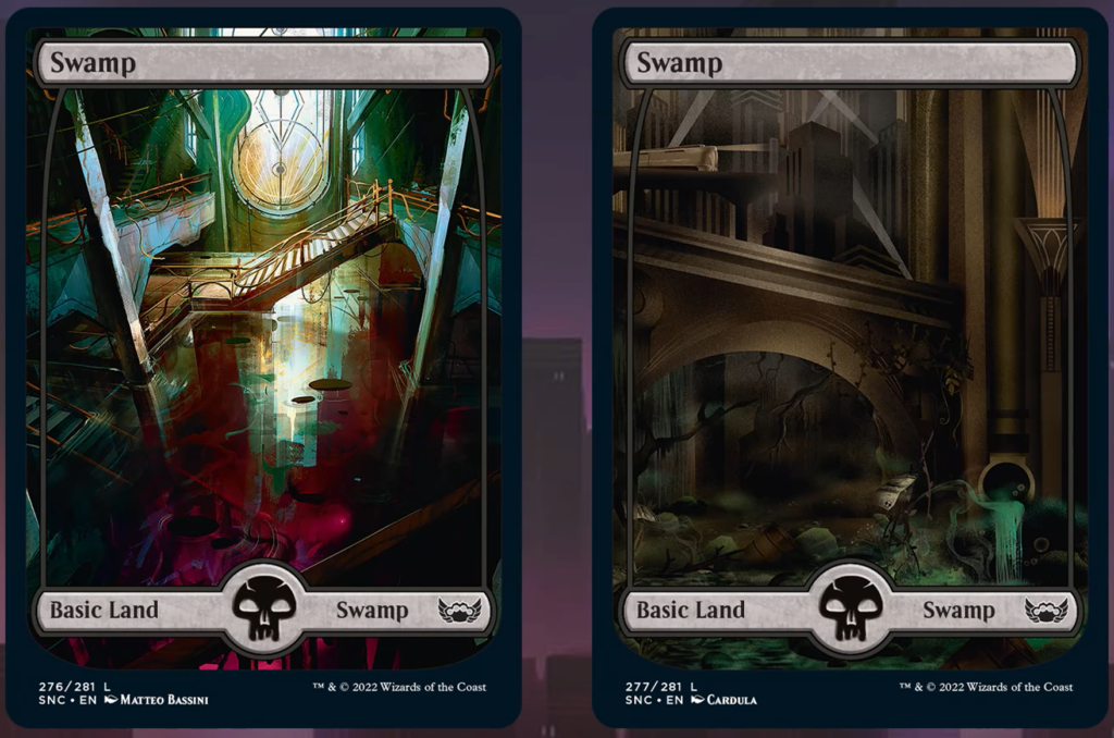 These cards were themed after Innistrad, you’ll see a lot of references and direction from that set. These cards will only appear in Set Boosters of Streets of New Capenna in the List slot. One of these cards will show up in 1 out of every 8 boosters, so you should expect between 3 and 4 a box on average.