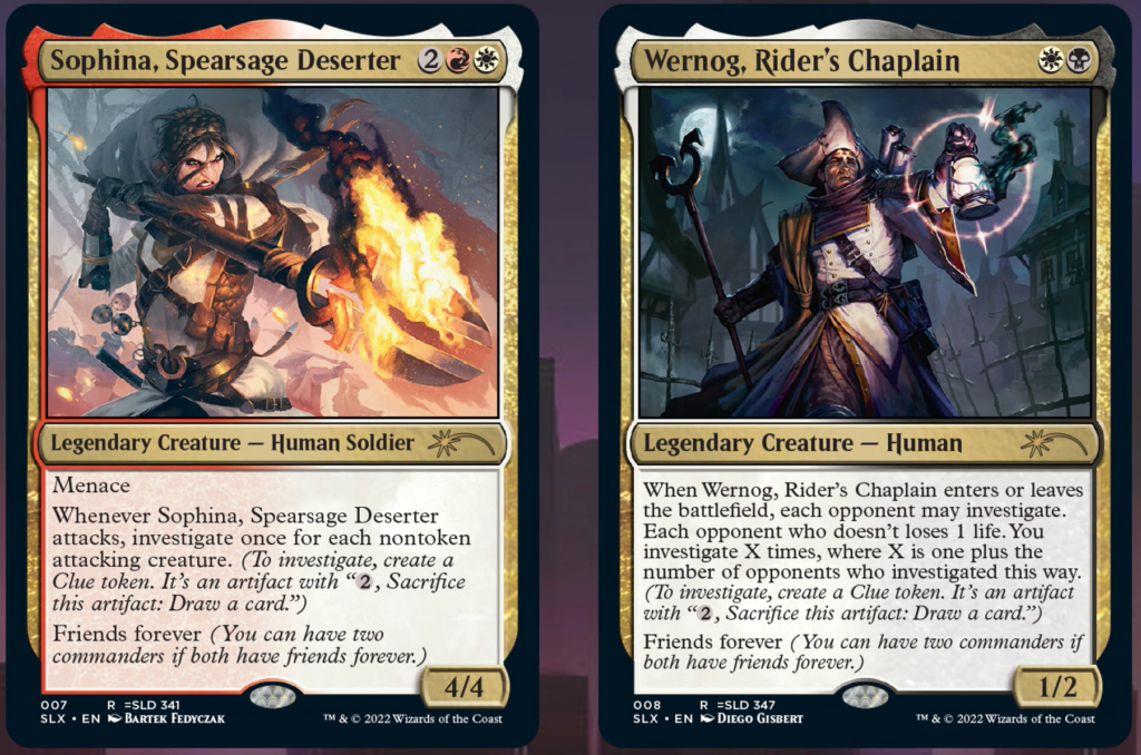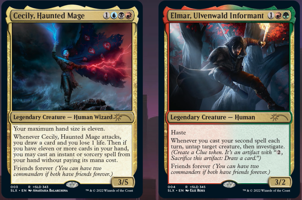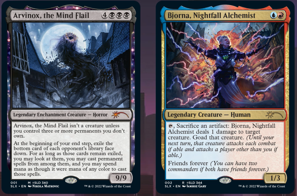 In each Commander deck, there will be a brand new “Collector Booster Sample Pack”. This is a 2 card pack that contains a Foil Common / uncommon, and a Rare or Mythic in either foil or non foil, but with a fancy treatment. This is to give players a little taste of collector boosters and some of the cool variants of cards you can get from them.