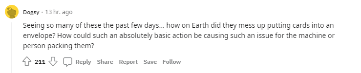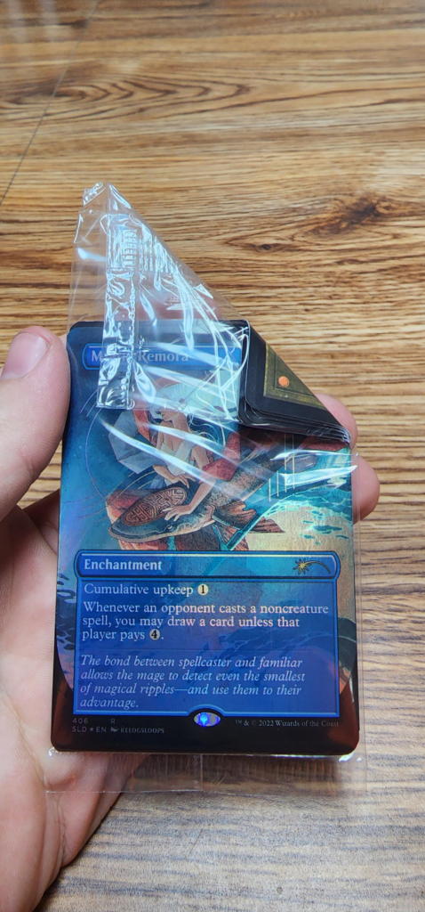 Images from Redditor baconpug115‘s post may better showcase how these cards are getting damaged. It appears that when these Secret Lair envelopes are being sealed, however that may be, some of these MTG cards are not correctly positioned. They, therefore, get bent when the product gets sealed. This is further suggested by a myriad of disgruntled comments blaming the envelope-style packaging being used for Secret Lair products.