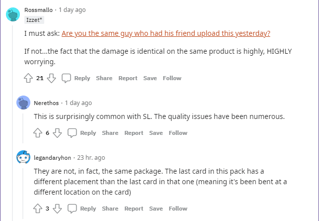 There are so many of these that Redditors are starting to link to deleted posts that showcase similar errors. Even though the second main post that is still up shows off pictures very similar to these, they are posted by different accounts. As mentioned by legandaryhon, they are also bent in different places, signifying their status as different products.