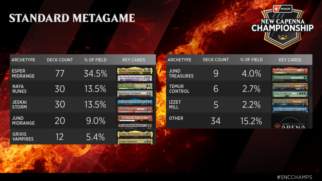 Most of these archetypes were players in the Standard meta before the championship. The biggest change to the meta after this tournament will likely be the introduction of Grixis Vampires from the CFB team.