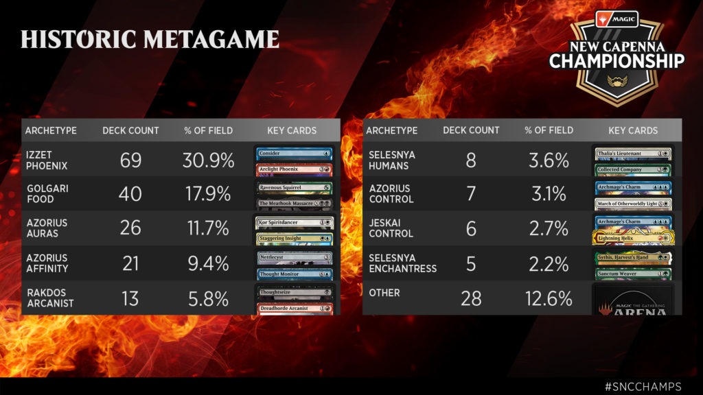 You’ll notice that I said that Selesnya Enchantress performed really well throughout the tournament, yet its not on this sheet. This is because it wasn’t a very popular option. Regardless, it should continue to be a deck that you watch out for if you plan to play Historic in the near future.