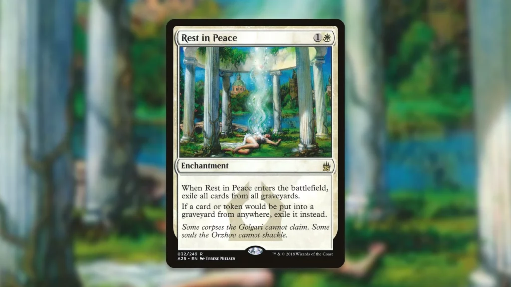 Your biggest issues come when you face down cards like Rest in Peace. Rest in Peace weakens all of your Mill cards. Any Milling you do in the early game to set up Superior Spider-Man gets undone when Rest in Peace hits the board. Your sideboard features a lot of answers to graveyard hate, but you’ll still need to rebuild after answering this enchantment.
