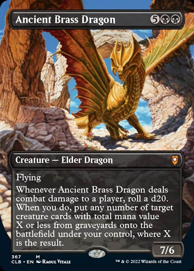 Ancient Brass Dragon is a beefy creature, coupled with a reanimation spell. We’re getting the roll mechanic coming back which is always fun.