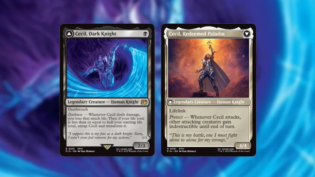 The card is quite synergistic with Cecil, Dark Knight. It can make an opponent winning a race with Saboteur’s +1/+1 counters tricky, since a swing with a flipped Cecil, Redeemed Paladin would be incredibly difficult to deal with.