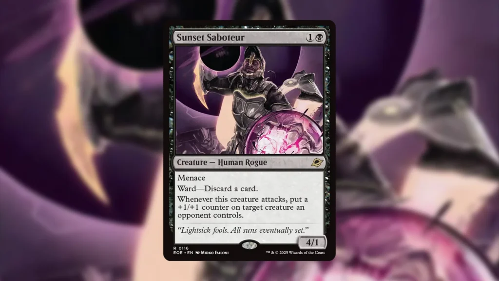 Perhaps one of the most underrated Edge of Eternities cards of all is Sunset Saboteur. These cheap, overstatted creatures that have disastrous downsides usually don’t end up being playable outside of some gimmicky Commander strategies. This time, however, it appears that this genre of card has caused this card to be overlooked.