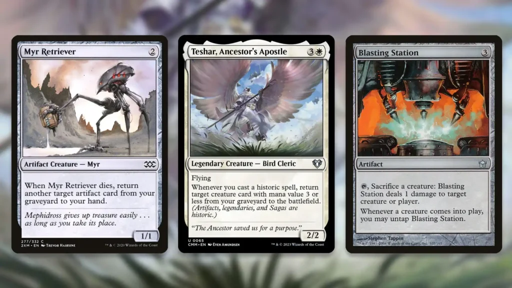 By utilizing some specific sacrifice outlets to your advantage, you can also create a bunch of infinite combos. With Myr Retriever and Blasting Station in play, for instance, you can have a very nasty win condition on your hands.