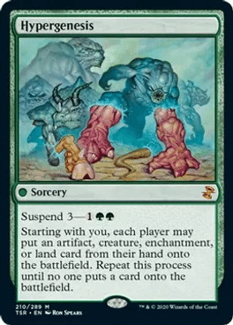 Hypergenesis, on the other hand, is much more over the top, almost certainly winning the game when cast as long as you have something big like Emrakul, the Aeons Torn to put into play. Hypergenesis has outrageous play patterns as a result, causing the card to get banned in Modern many years ago. However, it was banned so early on that it’s unclear how much better Hypergenesis archetypes are than the other two Cascade cards mentioned. Therefore, we decided to group all of these cards together.