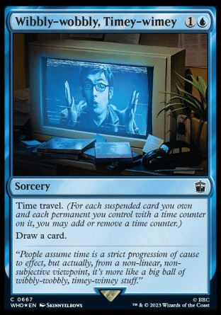 Effects that Time Travel can be found all over the Timey-Wimey Commander deck. Wibbly-Wobbly, Timey-wimey is a powerful card when set up to be impactful. A two mana card that replaces itself, can potentially cast spells for free and make effects last longer is ridiculous at the right moment.